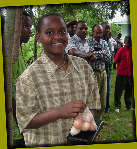 We had gone to Church. People bring offering of farm produces and are auctioned at the end of service. Mark boungt the eggs. |
