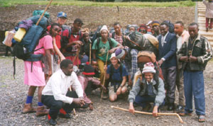 Jeff (UO intern June-Dec. 1999), with a group of Siha students,