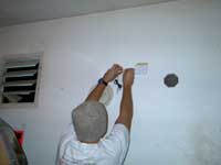 We found that a great deal of the the kiln room's heat escapes from an open wall vent (fig. 29). While this is beneficial in the summer, we believe that the radiant heat from the kilns could be put to use in heating the studio space in the winter toxins from the firing process are vented directly to the outside. In addition, we still believe that improvements to the current ventilation system could improve summer ventilation of the excess heat produced by the kilns. Such an improvement could decrease the building's reliance on forced air/heat, conserving energy and decreasing electricity bills. A simple and inexpensive solution would be to add a fan to the open-air vent already existing in the North wall (fig. 29) and also adding a fan to the interior wall (fig. 30) separating the kiln and studio spaces. In the winter, the vent to the exterior could be closed and the fan into the studio turned on. The warm air from the kiln room would then be pushed into the studio and would reduce the amount of energy needed to heat that space. In the summer, the interior vent would be closed and the fan to the exterior would blow the heat out of the building, cutting the cost of air conditioning. |